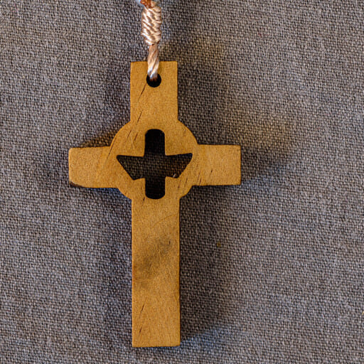 Chapelet Bois sur Corde Croix et Coeur Ajourés